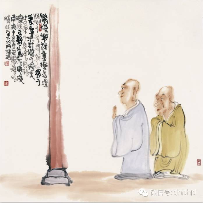 演旭,画僧在中国美术史上有重要的地位,而佛教美术在中国历史上更是无可替代的传承着人类精神文明。古有画僧石涛,八大,其后虚谷,弘一。皆在美术史上有着极为重要的地位,相信各其成就,是离不开对佛的追求和理解。修心即修行。自幼酷爱绘画艺术,刻苦研习书画。而后剃度于慈云寺,现为慈云寺禅画院主持。其绘画作品以静,禅为特色。以佛门视角勾勒人生,禅机风雅,意味深长。用写实传神的笔触,诠释着佛教人物内心的纯净善良。真正传播给大众的是真,善,美。仔细观摩,有佛教宏观的倾向,僧人的智慧。反映出的确是当代的人文情怀。真正用绘画弘扬佛法,正所谓,画僧为艺,且艺术涅槃,唯留绘画舍利。