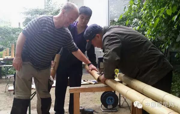 特别值得一提的是,在董教授来到德国的四天前,杜塞尔多夫遭到百年不遇的暴风雨袭击,城市各处遭到较为严重的损坏,刮倒了许多参天古树。德国Malkasten美术家协会具有270多年历史的艺术家广场花园也遭到了巨大的破坏,为了尽早得到维护修缮,美术家协会向社会征求捐款!董教授得知德方急需修缮资金,他将制作雕塑的剩余竹子做成纪念品并签名为美术家协会筹措善款,在开幕式当天举行慈善出售,当晚全部售出。